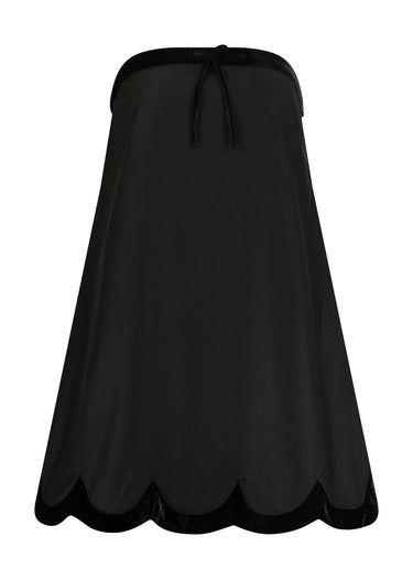 This strapless minidress boasts a playful flare silhouette with a velvet pattern, perfect for a preppy night out. Its mid-thigh length adds a touch of flirtatious elegance.